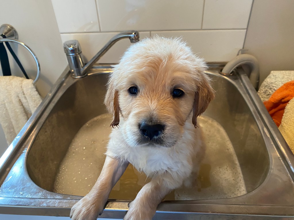 We had decided a while ago to keep one of the puppies, mainly because our other English girl, Daphne had to be spayed. Taking us up to four Golden Girls, our new addition, Flora Humphrey-Birtwhistle has been an absolute joy, except when she’s digging up my new flower bed of succulents or the Kiwi’s cabbages.